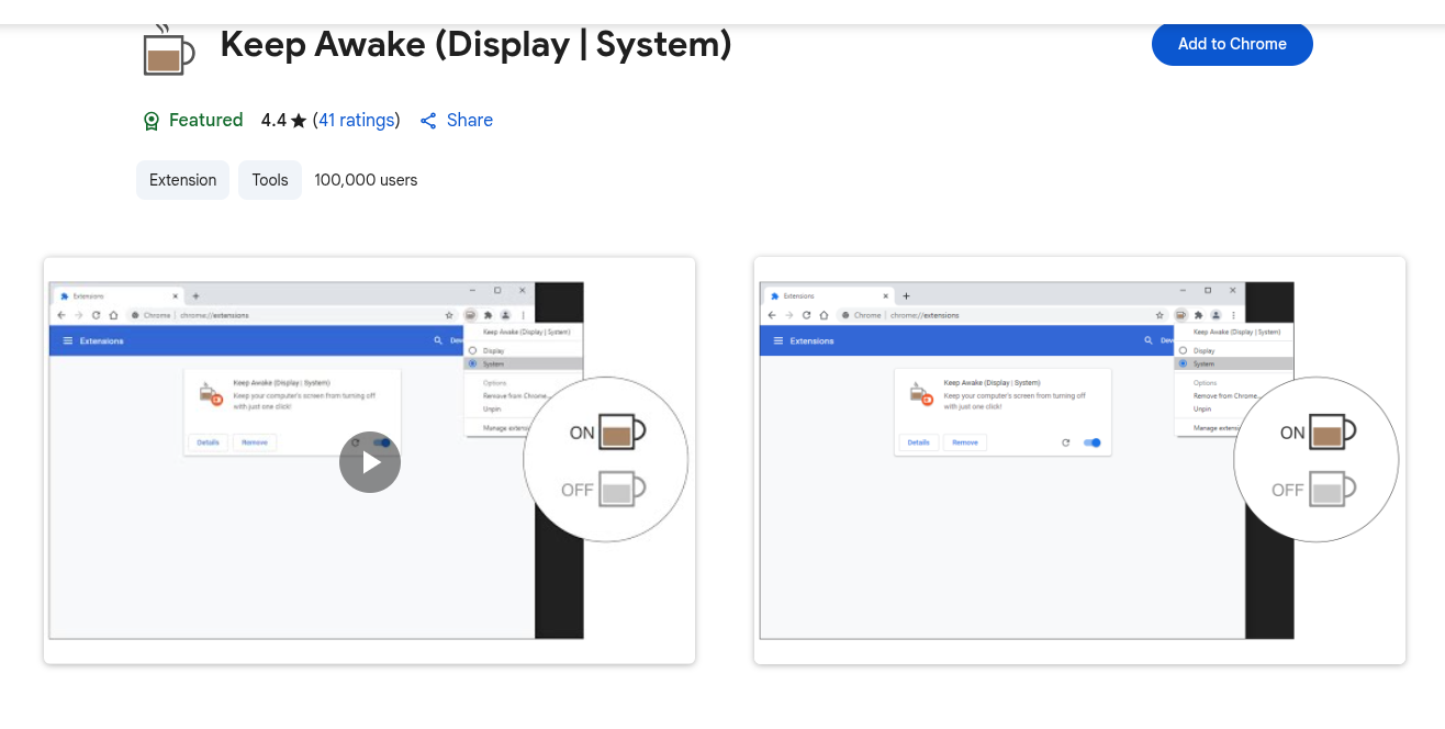 Enable Keep Awake: After installation, click the Keep Awake extension icon in your browser toolbar and select the option to keep the system awake and unlocked.