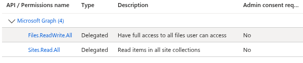 - Under Files select Files.ReadWrite.All